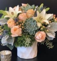 In some instances, the florists’ photo may represent an overall theme or look and include a one-of-a-kind vase which cannot be exactly replicated. Although the actual bouquet may not precisely match the photo, its temperament will. Occasionally, substitutions of flowers or containers happen due to weather, seasonality and market conditions which may affect availability. If this is the case with the gift you've selected, the local florist will ensure that the style, theme and color scheme of your arrangement is preserved and will only substitute items of equal or higher value.