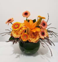 In some instances, the florists’ photo may represent an overall theme or look and include a one-of-a-kind vase which cannot be exactly replicated. Although the actual bouquet may not precisely match the photo, its temperament will. Occasionally, substitutions of flowers or containers happen due to weather, seasonality and market conditions which may affect availability. If this is the case with the gift you've selected, the local florist will ensure that the style, theme and color scheme of your arrangement is preserved and will only substitute items of equal or higher value.