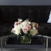 Soft shades of pink, peach, and ivory—reminiscent of a vintage English garden—come together in our Blush Collection. This arrangement features peach "Shimmer" garden roses, soft pink roses, white Lisianthus, and crisp white hydrangea, accented with Italian Ruscus and Eucalyptus greenery.