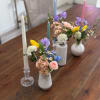 Celebrate the beauty of the season with a thoughtfully designed trio of bud vase arrangements, perfect for an Easter or Passover tablescape. This collection offers effortless versatility, allowing each petite arrangement to be styled together as a centerpiece or dispersed along the table for a more organic, layered look.