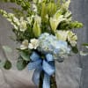 introducing Our New Design Blue Hue, beautifully arranged with lilies, hydrangea, delphinium, Alstroemeria, fillers and greenery