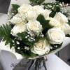 Introducing our white roses bouquet, beautifully made with white roses, baby's breath, and greenery and wrapped with ribbons