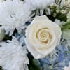Indulge in the beauty of fresh flowers with our 'For the Love of Blue & White' arrangement. Featuring stunning blue hydrangea blooms and delicate white roses, this elegant statement piece is sure to captivate hearts and elevate any space. Bring a touch of sophistication to your surroundings with this enchanting floral masterpiece!