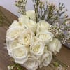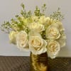 15 white roses in a gold vase
