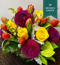 In some instances, the florists’ photo may represent an overall theme or look and include a one-of-a-kind vase which cannot be exactly replicated. Although the actual bouquet may not precisely match the photo, its temperament will. Occasionally, substitutions of flowers or containers happen due to weather, seasonality and market conditions which may affect availability. If this is the case with the gift you've selected, the local florist will ensure that the style, theme and color scheme of your arrangement is preserved and will only substitute items of equal or higher value.