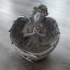 A beautiful, concrete angel holding a fresh bouquet of flowers. This thoughtful gift and sweet tribute will make a lasting impression. Our designers will pick the freshest blooms and create a one of a kind creation just for you. If you have a specific color request, please mention it in the florist directions box. Approximate size is 9" x 9".