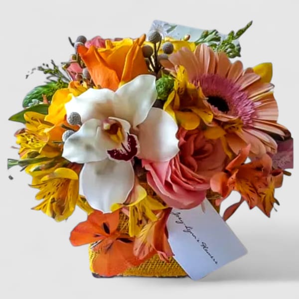 A beautiful arrangement arrived on time and was much appreciated by the birthday gal! It was creative and unique and fulfilled my expectations. I will continue to use this florist when ordering flowers in your area!