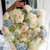 Please call first for availability. Please allow 48 hours notice. Send this beautiful grand size fragrant bouquet today to show them how much you care with it's vast amount of vanilla garden roses blue and white hydrangeas and more arranged with grey feather accents a long flowing ribbon bow and butterflies. The ultimate flowers. Send beautiful!