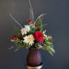 Rich deep red flowers with sweet white blooms to accent this delicious arrangement in a red velvet colored vase. This will put the icing on the cake for the holidays!