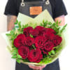 Dozen Red Roses with greenery and decorative wrapping paper. All bouquets come without a vase. You can choose a vase in the add-on section