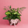 A lush collection of vibrant green plants artfully arranged together in a charming woven basket. This large dishgarden creates a beautiful display of nature’s tranquility, offering lasting beauty and easy care. Perfect for the home, office, or as a thoughtful gift, it brings a touch of fresh greenery and warmth to any space.