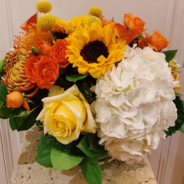 Such a lovely arrangement to share with an amazing lady on the passing of her beloved husband. The flowers brought a beautiful smile to a grieving heart. Thank you.