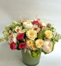 In some instances, the florists’ photo may represent an overall theme or look and include a one-of-a-kind vase which cannot be exactly replicated. Although the actual bouquet may not precisely match the photo, its temperament will. Occasionally, substitutions of flowers or containers happen due to weather, seasonality and market conditions which may affect availability. If this is the case with the gift you've selected, the local florist will ensure that the style, theme and color scheme of your arrangement is preserved and will only substitute items of equal or higher value.