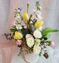 In some instances, the florists’ photo may represent an overall theme or look and include a one-of-a-kind vase which cannot be exactly replicated. Although the actual bouquet may not precisely match the photo, its temperament will. Occasionally, substitutions of flowers or containers happen due to weather, seasonality and market conditions which may affect availability. If this is the case with the gift you've selected, the local florist will ensure that the style, theme and color scheme of your arrangement is preserved and will only substitute items of equal or higher value.