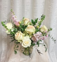 Lavender and Pink blend of premium roses and garden must haves complete this medium sized bouquet with a "fruity" fragrance that fills any room.