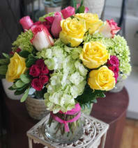 In some instances, the florists’ photo may represent an overall theme or look and include a one-of-a-kind vase which cannot be exactly replicated. Although the actual bouquet may not precisely match the photo, its temperament will. Occasionally, substitutions of flowers or containers happen due to weather, seasonality and market conditions which may affect availability. If this is the case with the gift you've selected, the local florist will ensure that the style, theme and color scheme of your arrangement is preserved and will only substitute items of equal or higher value.