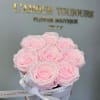 Mini white velvet box with 8 Everlasting roses. Everlasting roses are real roses preserved to last over three years.