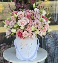 150 fresh tulips in our pink velvet signature box with the rabbit on the top.