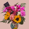 A floral arrangement with a Mexican base, a lovely gift for Mother's Day, birthdays, and special celebrations. The flowers are a charming mix of all colors that brings this floral arrangement to life!