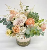 In some instances, the florists’ photo may represent an overall theme or look and include a one-of-a-kind vase which cannot be exactly replicated. Although the actual bouquet may not precisely match the photo, its temperament will. Occasionally, substitutions of flowers or containers happen due to weather, seasonality and market conditions which may affect availability. If this is the case with the gift you've selected, the local florist will ensure that the style, theme and color scheme of your arrangement is preserved and will only substitute items of equal or higher value.