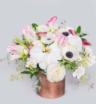 In some instances, the florists’ photo may represent an overall theme or look and include a one-of-a-kind vase which cannot be exactly replicated. Although the actual bouquet may not precisely match the photo, its temperament will. Occasionally, substitutions of flowers or containers happen due to weather, seasonality and market conditions which may affect availability. If this is the case with the gift you've selected, the local florist will ensure that the style, theme and color scheme of your arrangement is preserved and will only substitute items of equal or higher value.