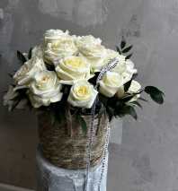 A lush, romantic arrangement designed in our signature pink hatbox. Filled with premium roses, spray roses, hydrangea, carnations, snapdragons, and soft eucalyptus, this piece makes an elegant statement for any celebration.