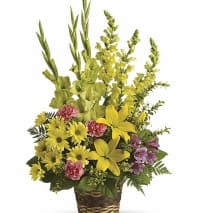 In some instances, the florists’ photo may represent an overall theme or look and include a one-of-a-kind vase which cannot be exactly replicated. Although the actual bouquet may not precisely match the photo, its temperament will. Occasionally, substitutions of flowers or containers happen due to weather, seasonality and market conditions which may affect availability. If this is the case with the gift you've selected, the local florist will ensure that the style, theme and color scheme of your arrangement is preserved and will only substitute items of equal or higher value.