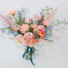 The beautiful season of the year is here, spring, helping us create amazing bouquets for you and your loved one. Pastel Dreams featuring a feminine mix of light blue, blush and pink blossoms. Comes in a glass vase.