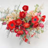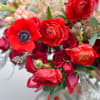 Glamorous and elegant, a perfect arrangement for a the perfect one. This lush bouquet is offering the best of all things bright and beautiful, remanding of spring, with red anemones, ranunculus, and tulips. It`s glamorous and eye-catching, making it the ultimate center piece. Red flowers are most commonly associated with feelings of true love and passion, they can also be used to convey respect, desire, and courage.