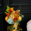 Our newest mason jar fall collection brings up the most colorful and joyful combination in a magical hand tied bouquet. Comes in a glass jar.