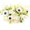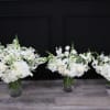 Clean, sophisticated, and sleek. Isabelle is a monochromatic arrangement with high-end appeal. Designed in a cylinder glass vase, this bouquet’s charm takes center stage in the form of unfurling white roses, feathery astilbe, snow flake ranunculus, and mysterious anemones. White flowers can mean reverence and humility, purity and innocence or sympathy for a bereavement.