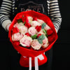 A simple and elegant of 12 pink roses and 10 red tulips.