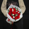 A simple and elegant of 12 red roses and 10 white tulips.
