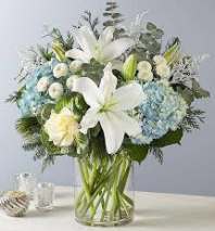 When words are not enough, flowers express your sympathy. This elegant combination of white flowers in a white ceramic container will deliver your message of love and support.