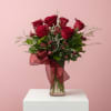 The perfect bouquet to let her know that you are thinking of her and that you love her. Six beautiful Prima Red Roses are arranged in a crystal clear vase and accented with a bow to help you make her day.