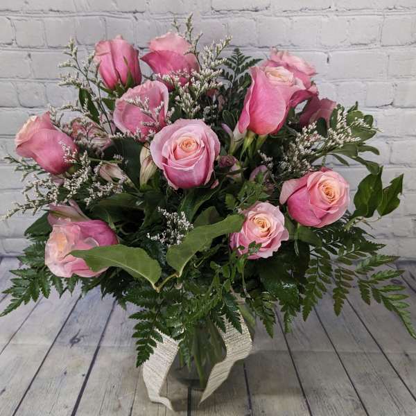 I like the flowers and they were fine, however, I would have given them more stars if they looked more like the picture online. The vase is smaller and the bouquet is not as colorful or big. In the photo it shows lots of pink roses, star daisies, and other pink in some of the flowers. The ones delivered were just white flowers with greenery, and some light pink roses, and a couple of star daisies. For the price, I expected to see what the photo showed. Looks are deceiving.