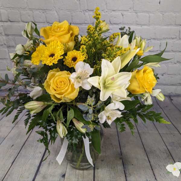 Beautiful flower arrangement and delivered on time as well. On line ordering process was very easy and convenient. Will definitely purchase from Lendon Floral and Garden in the future.