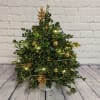 Looking for the perfect Christmas centerpiece? Well, look no further. Decorate your table with your own adorable mini Christmas tree. This centerpiece is individually handcrafted by our designers with sprigs of pine, miniature ornaments, lights, and beads to give your table the festive boost that it needs.