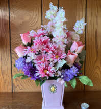 These flowers are not real, they are made of silk. Send an arrangement that will not wilt this Mother’s Day. This is the only design and is first come first serve.