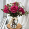 1/2 Dozen of our freshest Roses with white filler flower and greenery arranged in a clear vase! The Roses pictured are a shade of pink, we will be offering RED Roses this holiday! We cannot guarantee the same colors and varieties of flowers pictured, but it will give the same style and feel!