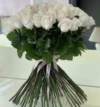 A stunning bouquet intertwining the timeless elegance of white roses with the unique warmth of brown roses, creating a harmonious blend of sophistication and earthy charm.