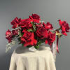 The "Eternal Beauty" flower centerpiece is a captivating arrangement that exudes timeless elegance and charm. Featuring a harmonious blend of rich red roses and delicate spray roses beautifully displayed in a ribbed pedestal bowl, this centerpiece is a stunning focal point that evokes a sense of everlasting beauty and grace. The deep crimson hues of the roses contrast with the soft petals of the spray roses, creating a lush and romantic composition that is sure to impress and enchant any setting with its sophisticated allure.