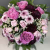 Soft, romantic, and full of charm — Lavender Kiss is a lush mix of lavender roses, playful mums, and rich textured blooms arranged in a sleek purple glass cube. This delicate yet vibrant design delivers a gentle embrace of color, perfect for sending love, comfort, or sweet thoughts that linger like a kiss.