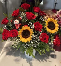 In some instances, the florists’ photo may represent an overall theme or look and include a one-of-a-kind vase which cannot be exactly replicated. Although the actual bouquet may not precisely match the photo, its temperament will. Occasionally, substitutions of flowers or containers happen due to weather, seasonality and market conditions which may affect availability. If this is the case with the gift you've selected, the local florist will ensure that the style, theme and color scheme of your arrangement is preserved and will only substitute items of equal or higher value.