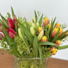 Brighten someone's day with a contemporary arrangement of 30 vibrant tulips elegantly nestled within a sleek crystal rectangular vase. Its minimalist design showcases the beauty of each bloom, creating a stunning display that's sure to bring joy and warmth to any space. Whether it's to celebrate a special occasion or simply to spread some cheer, this modern twist on a classic favorite is guaranteed to bring a smile to their face.
