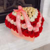 A heart-shaped box filled with roses and Ferrero Rocher chocolates — the perfect romantic gift.