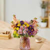 Give them that cheerful feeling of being in the garden. Our loosely gathered bouquet features a delightful mix of blooms, arranged in a unique crescent shape. Designed in our embossed lavender vase full of vintage charm, it’s a wonderful surprise to brighten someone’s day.