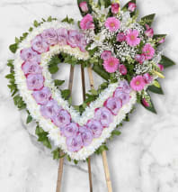 Custom broken heart wreath to honor the memory of your beloved ones. Created closed heart with red roses, following with white broken line if white roses.