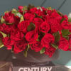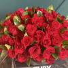 100 red roses in modern black vase