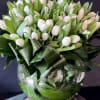 75 White Tulips in Fishbowl Vase